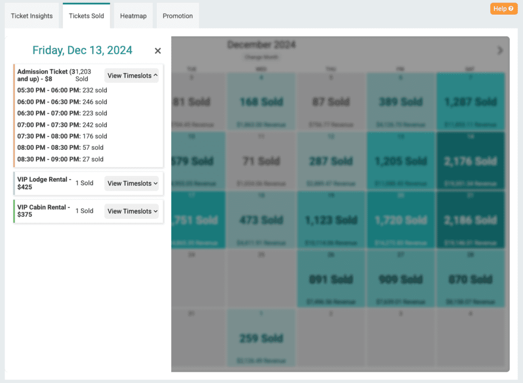 TicketSignup’s calendar-based reporting delivers real-time visibility and intuitive tools to help you manage capacity, enhance operations, make more money, and make smarter decisions. Here’s how timed entry events of all sizes unlock actionable insights with calendar-based reporting tools.