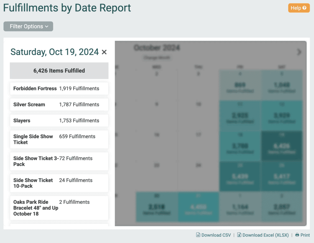 Track merchandise, add-ons, and attraction check-ins in one place. Three new reports make it easy to monitor fulfillment, see redemptions, and export detailed data for your team.