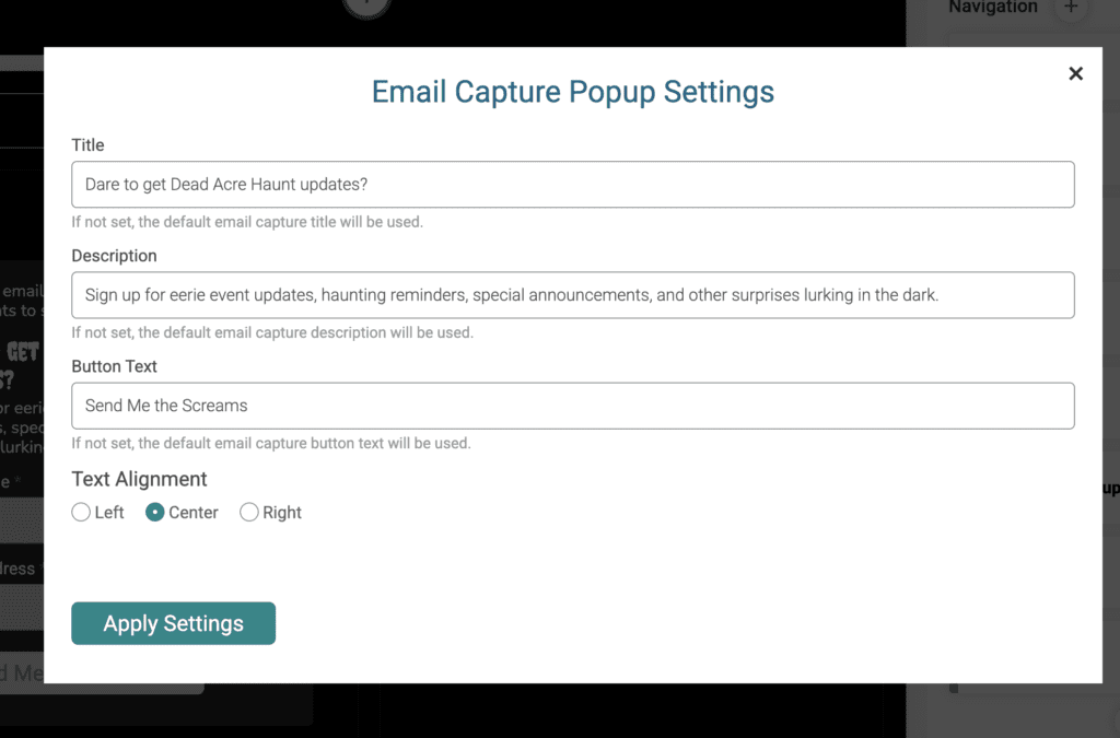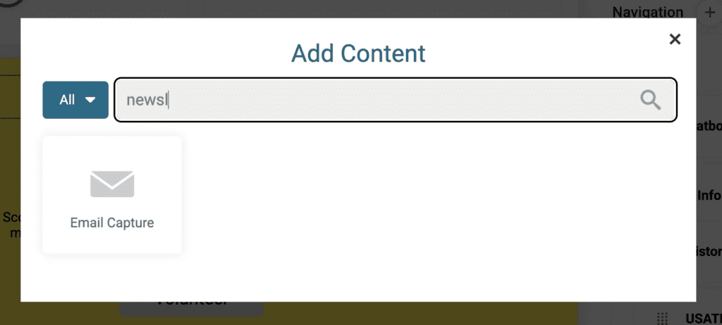 To add a newsletter signup to your Ticket Event Website, go to Website >> Website Builder. Add a component, then search for “newsletter” or “email capture”. Note that you must have TicketSignup’s free Email Marketing enabled to add the Email Capture component.