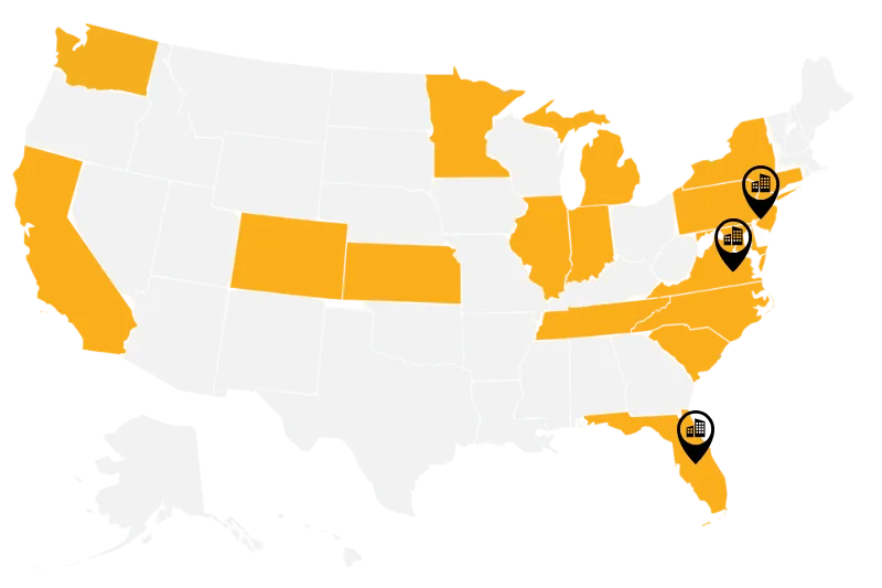 The remaining 40% of employees are spread out throughout 16 states from the East Coast to West. We collaborate and work together through a combination of online meeting tools and regular in-person gatherings throughout the year.