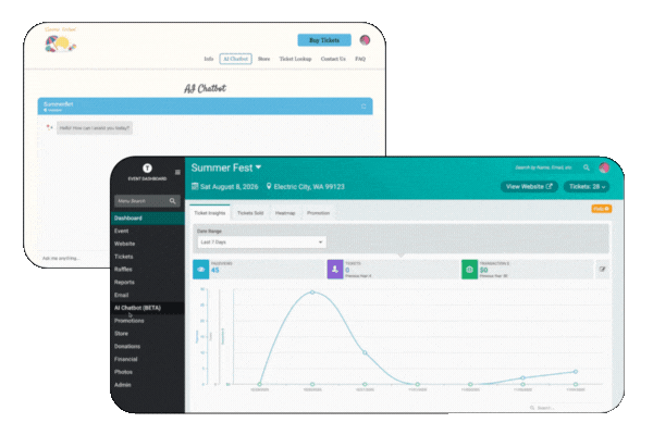The Beta TicketSignup AI Chatbot is free, integrated tool to solve every event’s evergreen challenge: attendees who don’t read. The chatbot lives on your TicketSignup event website, making it easily accessible for event attendees and potential buyers to get instant answers to event questions.