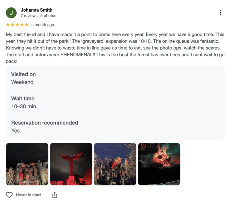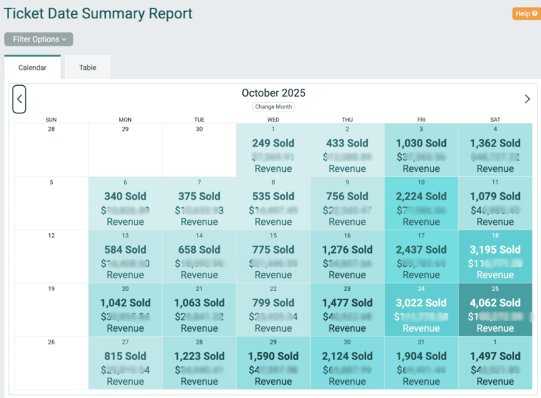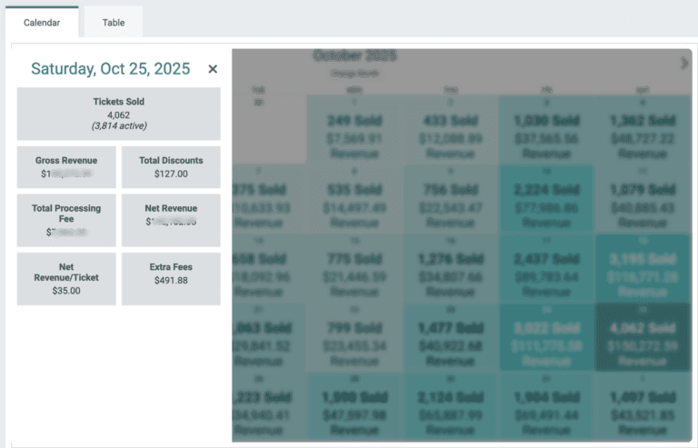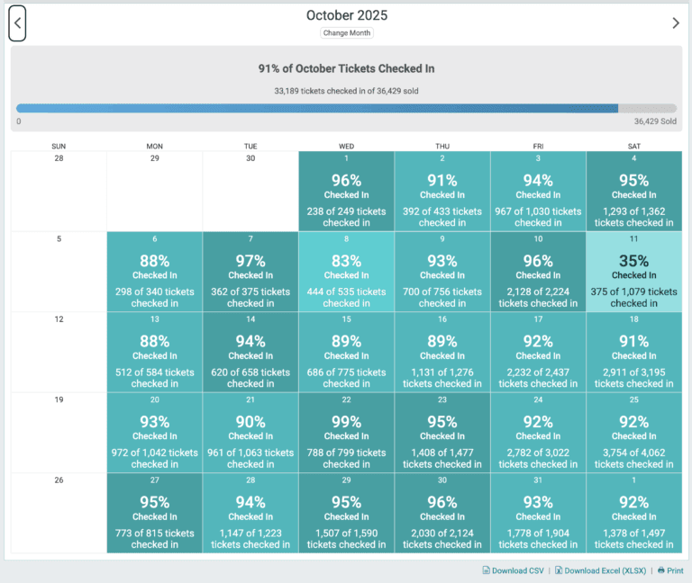 TicketSignup’s reporting tools gave Rob and Nik clear insight into how each time slot was selling, which areas would be busiest, and when they needed the strongest actor coverage. They used these reports daily to plan staffing, coordinate actor timing, and anticipate peak moments. The improved visibility helped ensure that guests received the best version of the Haunted Forest experience throughout the season. Calendar-based reporting and analytics like the attendee heatmap also provided insights to improve next year’s marketing and operations.