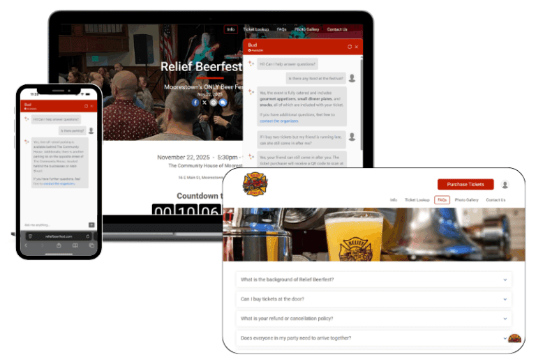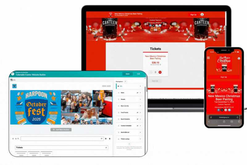 - Event websites for events of all sizes, whether you need a full content website for an annual blowout or a simple ticketing page for a holiday beer tasting.