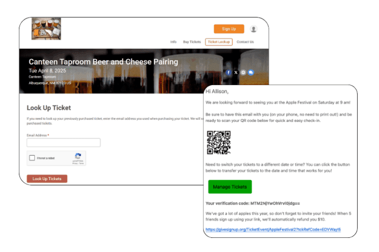 - Include a Ticket Lookup component on your website so ticket purchasers can instantly re-send their confirmation email and access their tickets.