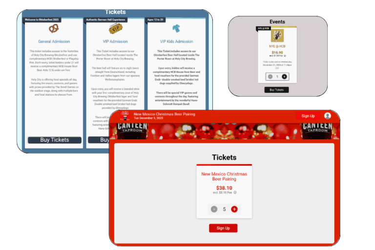- Easy to use with an intuitive process to set up ticket sales for your brewery events and speedy for your patrons to purchase tickets.