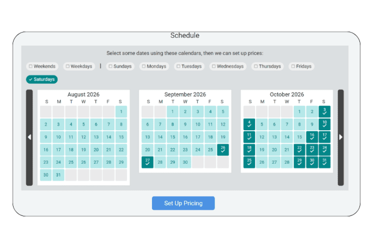 - Real-Time Calendar-Displays: Make picking dates easy with live calendars that automatically update to include pricing, times, and sold-out status (no manual updates required).
