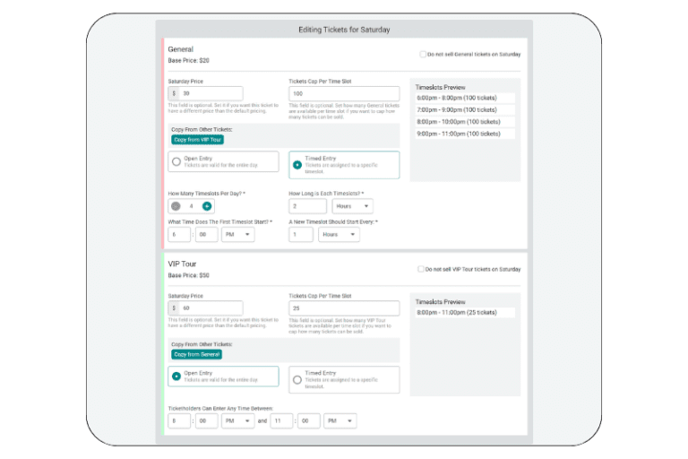 - Bundle items with specific tickets, such as including 2 drink tickets and a fast pass with your VIP ticket