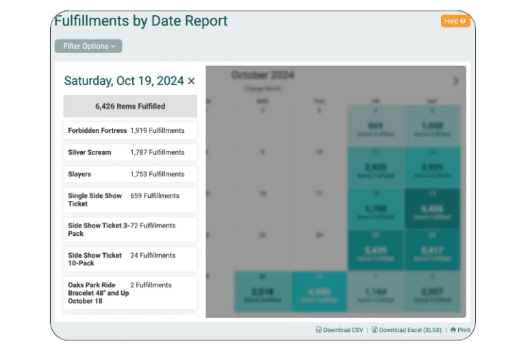 - Merch and Add-Ons: Understand your merch fulfillment and attraction check-in stats for better staffing decisions.