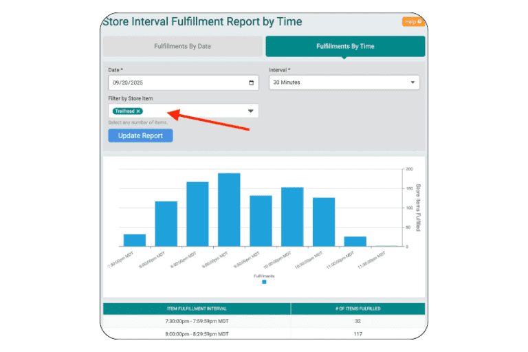 - Check-in store items as their redeemed, whether that’s all at once at the gate, or individually throughout the event