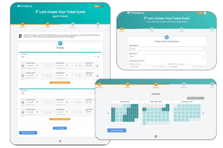 - Setup Wizard: Create your event in minutes with the intuitive, calendar-based setup wizard.