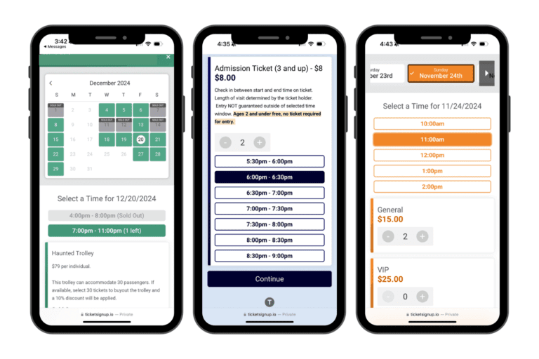 - Flexible Purchase Path: Choose the data to display on your calendar, set the order of operations, update styling and wording, and automated tickets-remaining alerts to keep potential buyers moving forward.