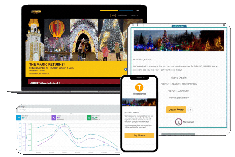 Customizable, data-driven free websites and ticketing options maximize sales to your holiday light show.