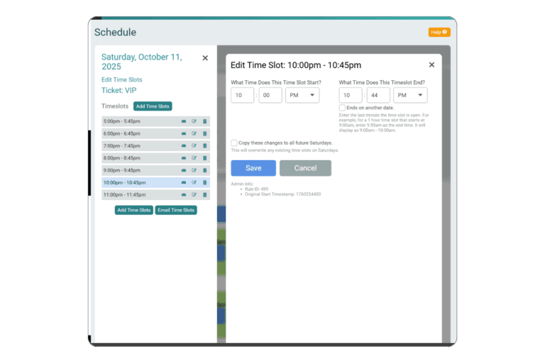 - Effortless Updates: Edit Caps, Pricing, or Time Slots for a specific time slot or date; or apply bulk updates across ticket types and days of the week.