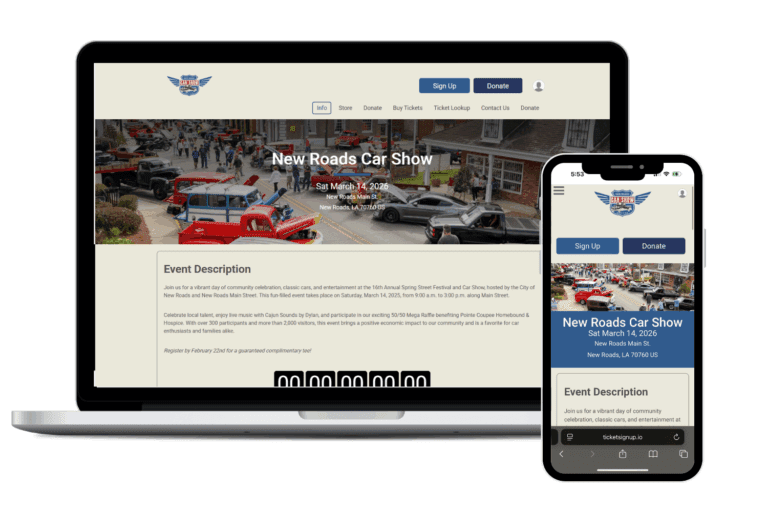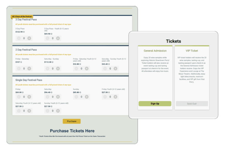 - On-Site Ticket Sales via the Tickets App integration with Square or ongoing online sales