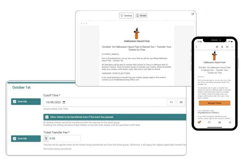 - Administrative ticket management gives you, the event director, full control of attendee actions, from refunds to transfers