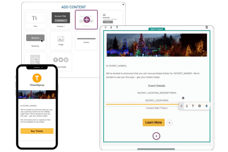 - Free email with unlimited sends and unlimited contacts to promote your events and manage logistics