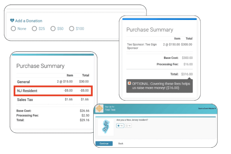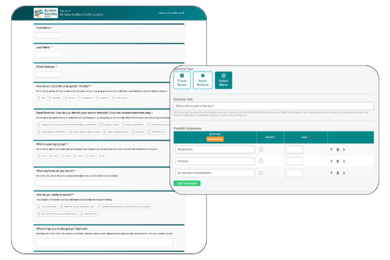 - Add unlimited custom questions such as names for additional golf players or beverage preferences for a nonprofit gala.