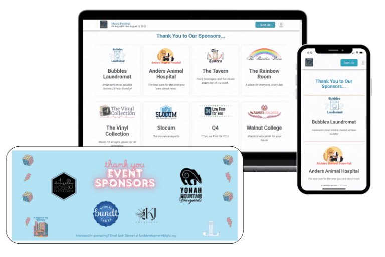 - Easily promote your sponsors on your dedicated event website and in your email communications.