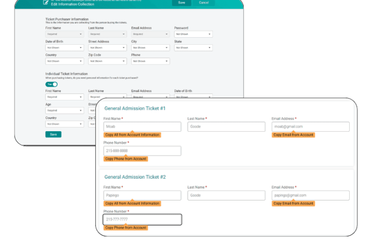 - Build your supporter email list by requiring information on just the ticket purchaser or collect it on all ticket holders.